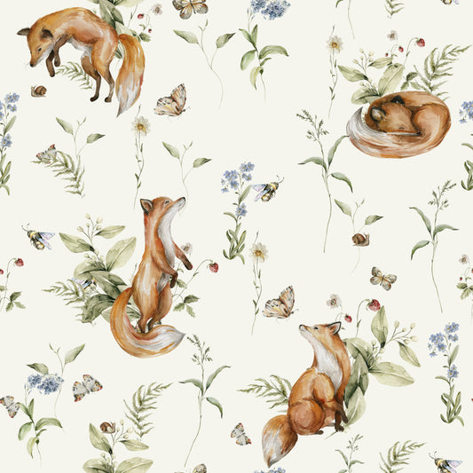 Frolicking Foxes (Ivory) Wallpaper