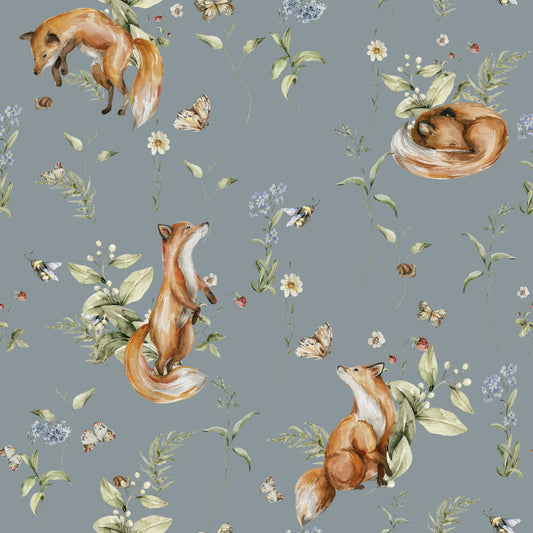Frolicking Foxes (Dusty Blue) Wallpaper