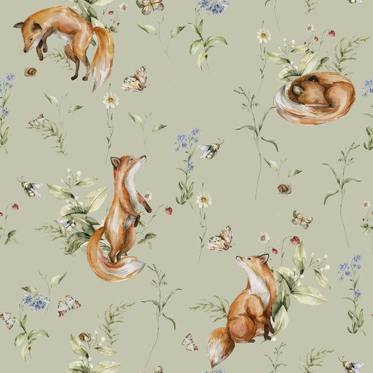 Frolicking Foxes (Sage) Wallpaper