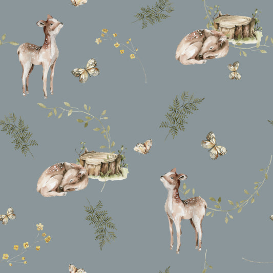 Freckled Fawns (Dusty Blue) Wallpaper