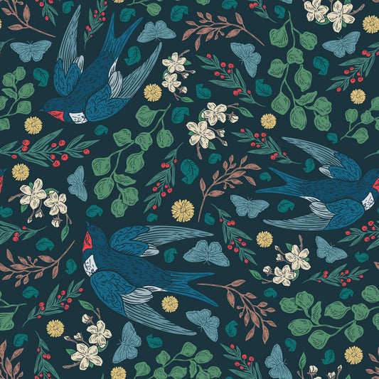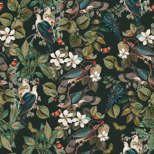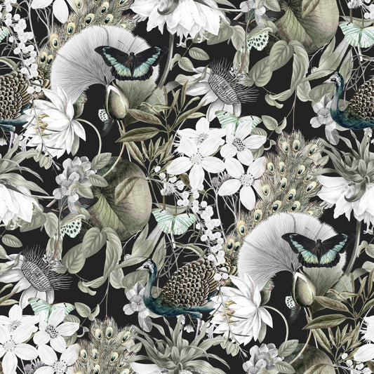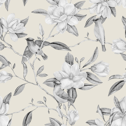 Birds of a Feather (Black & White with Ivory) Wallpaper